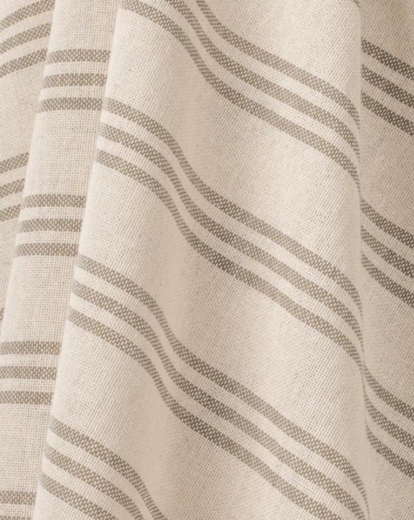 Confeccionada en tejido Polo con rayas mostaza o grafito, 100% algodón. Detalle de flecos en los extremos.